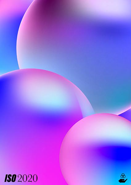 ISO 2020 (2020): Part of a trio of poster designs created during the COVID-19 pandemic. Originally titled ‘Bubbles’, this work commemorates the struggles and victories we all faced in privacy of mind.
