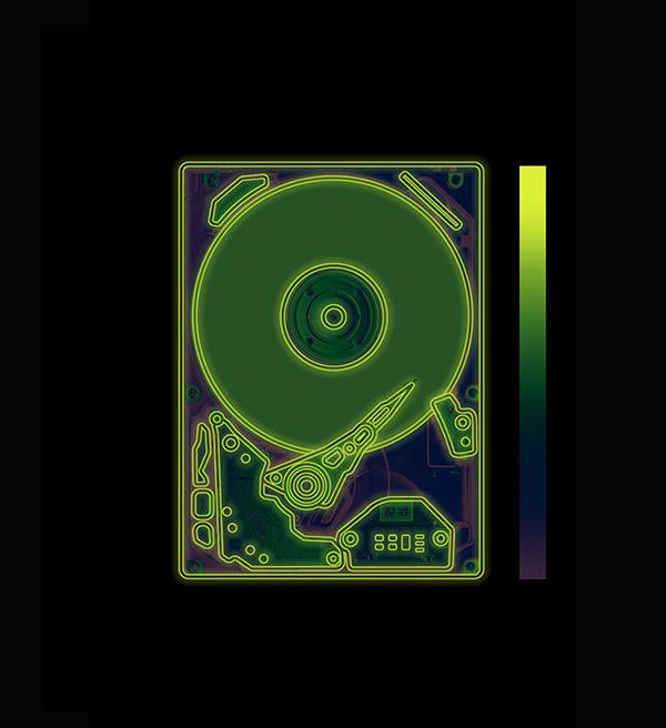 SATA (2018): Traced in Illustrator. Artwork exploring line and colour of a SATA computer hard-drive.